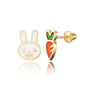 14k Gold Plated Enamel Rabit Carrot Baby Girls Earrings with Silver Post